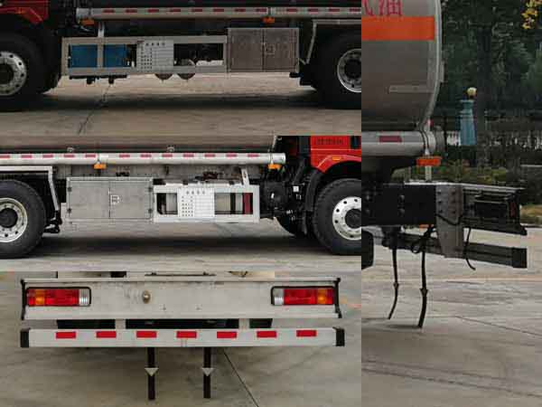 | 配置 | 1、該車適用于危險(xiǎn)品運(yùn)輸,運(yùn)送危險(xiǎn)貨物車輛類型為:FL型,類項(xiàng)號:3。運(yùn)輸介質(zhì):汽油,密度:700千克/立方米。罐體有效容積24.5立方米,罐體外形尺寸(長×寬×高)(mm):7200×2400×1750。整車外形長與采用軸距/后懸對應(yīng)關(guān)系為(mm):10110/4600+1350/2760,10110/4800+1350/2560。2、側(cè)、后防護(hù)材料均為鋁合金,螺栓連接;后防護(hù)截面尺寸(寬×高)(mm)60×120,下邊緣離地高500mm。3、隨底盤選裝高頂駕駛室,選裝前圍和燈具。僅選用排氣管前置、限速裝置(限速79km/h)、前輪盤式制動(dòng)及子午線輪胎的底盤;安裝帶有衛(wèi)星定位功能的行駛記錄儀;ABS系統(tǒng)生產(chǎn)廠家:長春瑞立科密汽車電子有限公司,型號:CM4XL。采用發(fā)動(dòng)機(jī)與油耗值對應(yīng)關(guān)系為(L/100km):CA6DK1-32E6/37.47,CA6DK1-28E6/37.47。 該車后軸為采用空氣懸架. | ||