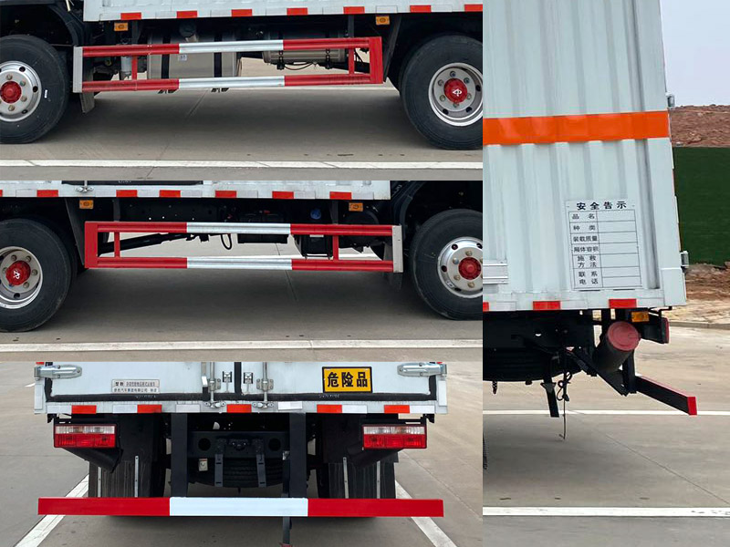 | 其它: | 1、該車為危險(xiǎn)品運(yùn)輸車,運(yùn)輸具有獨(dú)立容器(瓶)包裝的物品,運(yùn)送危險(xiǎn)物品類項(xiàng)號(hào):9。廂體頂部封閉,不可開啟。2、側(cè)、后防護(hù)材料均為Q235,側(cè)防護(hù)螺栓連接,后防護(hù)焊接,截面尺寸(mm)100×50,下邊緣離地高450mm。3、僅選用排氣管前置、限速裝置(限速80km/h)、前輪盤式制動(dòng)及子午線輪胎的底盤,轉(zhuǎn)向輪安裝輪胎爆胎應(yīng)急防護(hù)裝置。安裝帶有衛(wèi)星定位功能的行駛記錄儀。ABS系統(tǒng)控制器型號(hào)/生產(chǎn)廠家: ABS/ASR-24V-4S/4M/襄陽(yáng)東風(fēng)隆誠(chéng)機(jī)械有限責(zé)任公司。發(fā)動(dòng)機(jī)/油耗值(L/100km)對(duì)應(yīng)關(guān)系為: ZD30D16-6N/17.2,YCY24140-60/16.5, NV30-C6G/17.3, CY4SK261/17.4, YCY30165-60/17.5, CY4BK361/17.9。選裝ETC。隨底盤選裝駕駛室。廂體側(cè)面選裝開門型式及位置,選裝不帶側(cè)開門,選裝廂體樣式,廂體側(cè)面板選裝開百葉窗。僅采用軸距3308mm。 |