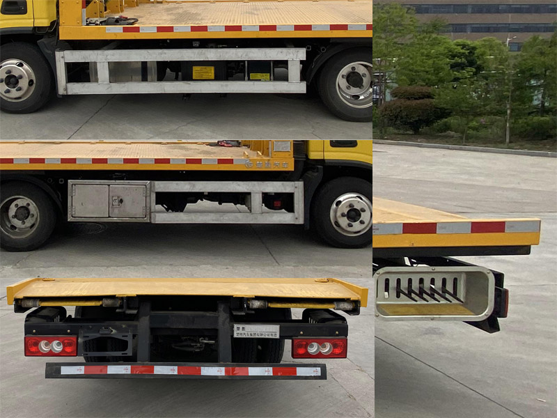| 其它: | 該車主要用于道路清障,主要專用裝置為平板、絞盤、鋼絲繩、油缸。該車無托舉功能。側(cè)防護材料為鋁合金,螺栓連接;后防護材料為Q235,焊接,截面尺寸(mm):100x50,下緣離地高420mm。ABS型號/生產(chǎn)廠家:YF8/武漢元豐汽車電控系統(tǒng)有限公司,ABS-E/威伯科汽車控制系統(tǒng)(中國)有限公司,ABS-VI·E/廣州瑞立科密汽車電子股份有限公司,YF9/武漢元豐汽車電控系統(tǒng)有限公司。僅選用軸距3360mm。準乘人數(shù)/整備質(zhì)量對應(yīng)關(guān)系:2人/2865kg,3人/2800kg。選裝前圍。整備質(zhì)量包含冷卻液、潤滑劑、停車楔、反光背心、三角警告牌。 |