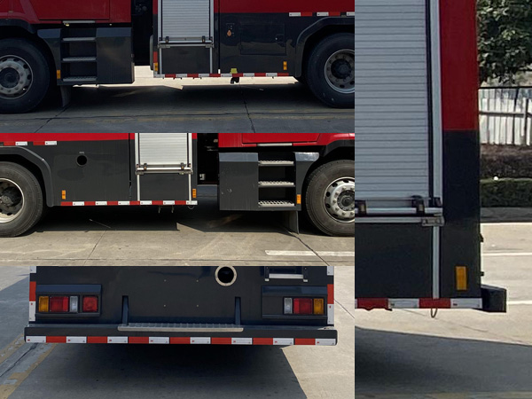 | 其它: | 罐體總?cè)莘e為6.600立方米,水罐尺寸:2390×2400×1200mm。整體式側(cè)防護(hù)結(jié)構(gòu),后防護(hù)裝置材料:Q235A,截面尺寸:100×120mm,與車(chē)輛連接方式:螺栓連接,后防護(hù)離地高度:398mm,ABS生產(chǎn)企業(yè)為浙江亞太機(jī)電股份有限公司,型號(hào)為APG3550500H1。主要專(zhuān)用裝置有消防泵、消防炮。 | ||